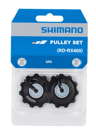 W zestawie znajduje się kółko prowadzące (górne) i napinające (dolne) do przerzutki 10-rzędowej Shimano GRX.