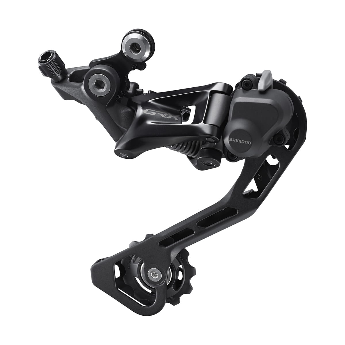 Przerzutka SHIMANO GRX ma zintegrowany mechanizm stabilizatora łańcucha zapewniający cichą, precyzyjną i niezawodną pracę układu zmiany przełożeń w zróżnicowanym terenie. Przerzutka ma przełącznik napinacza łańcucha przydatny podczas jazdy po równych nawierzchniach.