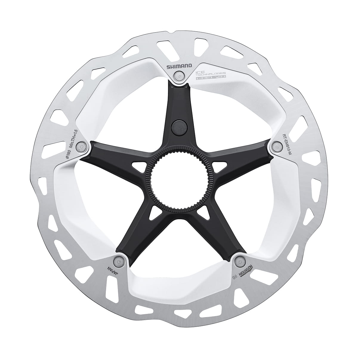 Tarcze hamulcowe SHIMANO RT-EM810 do układów czujnika prędkości wyróżniają się dużą i równomierną siłą hamowania podczas jazdy we wszystkich warunkach. Tarcza ICE TECHNOLOGIES FREEZA znacznie zmniejszają nagrzewanie się układu hamulcowego, gwarantując równomierne hamowanie nawet podczas długich zjazdów. System mocowania CENTER LOCK firmy SHIMANO umożliwia sprawny montaż i demontaż tarcz za pomocą wielowypustu oraz specjalnej konstrukcji pierścienia blokującego.